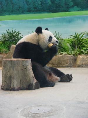 動(dòng)物園長(zhǎng)葉杰生說(shuō),“他們(熊貓保姆)后來(lái)就用了熊貓喜歡吃的素材,譬如說(shuō)蘋(píng)果,他(熊貓保姆)就把它雕成一顆圓圓的,很渾圓的白湯圓,另外又把胡蘿卜把它雕成紅湯圓!