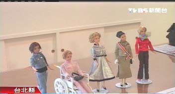 特色最不明顯的是曾文惠,志工翻閱照片,端詳許久,研究半天,最后以“高貴”為其主題,紅色套裝一上身,就有了架勢,但和其它夫人芭比相較,還是遜了一點。