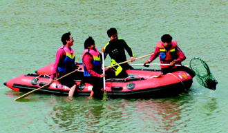 岸上圍觀民眾擔(dān)心它會(huì)淹死而目睹了一場不一樣的抓猴記。警義消拿出網(wǎng)子朝小獼猴撒網(wǎng),終將它“撈”上橡皮艇,“抓猴劇”半小時(shí)落幕。