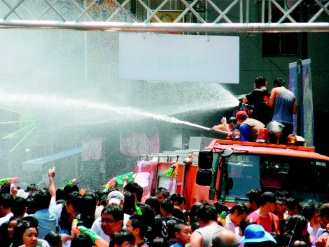 中新網(wǎng)4月13日電 臺(tái)灣臺(tái)北縣“中和市2009潑水節(jié)”昨天上午在南勢(shì)角捷運(yùn)站盛大登場(chǎng),民眾拿著水槍、水瓢、水桶到處噴灑開(kāi)戰(zhàn),臺(tái)北縣消防局也調(diào)派兩輛消防水車(chē)加入戰(zhàn)局,超強(qiáng)水柱掃射現(xiàn)場(chǎng)民眾,讓民眾遇水則發(fā),氣氛夯到最高點(diǎn),樂(lè)到不行。