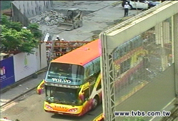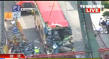 臺北市消防局表示,下午1時54分松高路19號工地發(fā)生起重機吊臂掉落,砸中1輛停在路旁、載著25名大陸游客的游覽車尾端,目前傷者已經送醫(yī)急救。