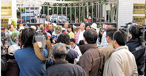 命運丕變:扁進入北所的第一道關(guān)卡,所有因扁的抗爭、聲援,或是律師、探視者發(fā)表談話,都是在這道大門發(fā)生。