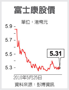 據(jù)臺灣《中國時(shí)報(bào)》報(bào)道,富士康昨日股價(jià)重挫近一成,終場下跌0.57港元、收5.31港元,跌幅達(dá)9.69%。