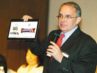 美國(guó)商會(huì)執(zhí)行長(zhǎng)魏理庭希望未來(lái)臺(tái)灣能出現(xiàn)不只會(huì)操弄民意的領(lǐng)導(dǎo)人。圖為五月底他以進(jìn)口巧克力,說(shuō)明臺(tái)灣當(dāng)局兩岸政策的荒謬 。聯(lián)合報(bào)資料照片/胡圣堤攝影