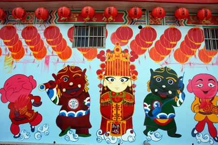 中新網10月19日 據“中央社”報道,臺灣云林縣西螺鎮(zhèn)福興宮太平媽祖將于二十二日起駕出巡繞境會香,管理委員會商請小學師生在后方墻壁創(chuàng)作Q版壁畫,造型可愛逗趣。與此同時,還特別推出Q 版媽祖公仔,只送不賣,上香拜拜添油香錢就可獲贈一個,限量666個。