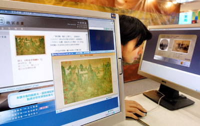 中新網(wǎng)10月23日電 據(jù)“中央社”報(bào)道,數(shù)字學(xué)習(xí)科技成果展二十三日在臺(tái)北世貿(mào)展覽館一館舉行。圖為臺(tái)北故宮博物院展出在線名畫(huà)欣賞教學(xué)。