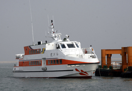 一百八十二人座“仙洲號”交通船已經(jīng)駛抵金門,將于明年初投入大小金門海上輸運行列!爸醒肷纭眻D 倪國炎 攝