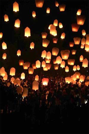 圖:臺(tái)北縣數(shù)千民眾燃放天燈祈好運(yùn)