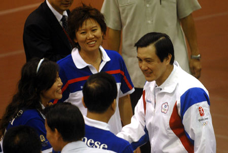 馬英九30日南下高雄左營選手訓(xùn)練中心,慰勉北京奧運參賽受訓(xùn)選手、教練,預(yù)祝行程順利、奪標(biāo)成功。據(jù)悉,臺灣將派出80余名選手參加北京奧運的15項運動,第一批選手預(yù)定8月3日出發(fā)!爸醒肷纭眻D