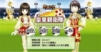 臺(tái)灣網(wǎng)游廠商也夠聰明,他們推出了應(yīng)景的世界杯風(fēng)格裝備產(chǎn)品。目前臺(tái)灣最熱血的武俠網(wǎng)游非華義旗下的“熱血江湖”莫屬。6月正值該游戲的改版升級(jí)階段,游戲服務(wù)商就順勢(shì)將6月打造成了“世足月”。其中最令球迷玩家興奮的就是,游戲地圖中將新增綠茵場(chǎng)為全新場(chǎng)景,游戲裝備也同步推出新款披風(fēng)“皇家親衛(wèi)隊(duì)”。這款披風(fēng)除了可以幫助玩家增加經(jīng)驗(yàn)值、氣功攻擊力之外,還能讓玩家為自己喜愛(ài)的球隊(duì)加油打氣,在游戲中體驗(yàn)拉拉隊(duì)的歡樂(lè)氛圍。(導(dǎo)報(bào)記者 燕子 綜述)