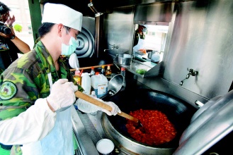 軍方規(guī)劃未來部隊每六個月,選擇一天吃兩餐可加熱野戰(zhàn)餐盒、一份野戰(zhàn)口糧。美軍多年實(shí)戰(zhàn)經(jīng)驗(yàn),在野外的戰(zhàn)士若是能吃到熱食,對于士氣有很大的幫助。臺灣過去沒有野戰(zhàn)炊事車,近幾年才開始由聯(lián)勤司令部研發(fā),同時在漢光演習(xí)中進(jìn)行實(shí)地的野戰(zhàn)測試。