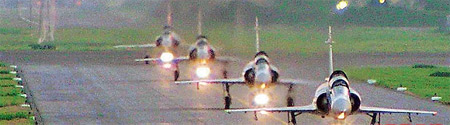 中新網(wǎng)4月27日電 據(jù)臺(tái)灣媒體報(bào)道,臺(tái)軍漢光二十六號(hào)演習(xí)26日展開,為驗(yàn)證幻影戰(zhàn)機(jī)保存成效,演習(xí)首度安排45架戰(zhàn)機(jī)逃離新竹空軍基地,飛往花蓮佳山基地,以逃避導(dǎo)彈攻擊。