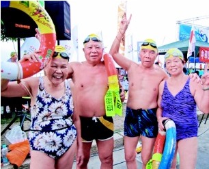 七十七歲的向延發(fā)也和太太同行,一起完成泳渡美夢(mèng),他說這次來臺(tái)旅游重點(diǎn)就是日月潭泳渡,接下來要和廣州冬泳會(huì)的“玩水一族”老友,一起游臺(tái)中、花蓮、臺(tái)南。