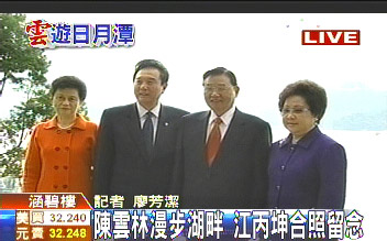 陳云林今天清晨6點(diǎn)多,先是邀約江丙坤共進(jìn)早餐,后來又漫步在日月潭湖畔,欣賞美麗的風(fēng)光。