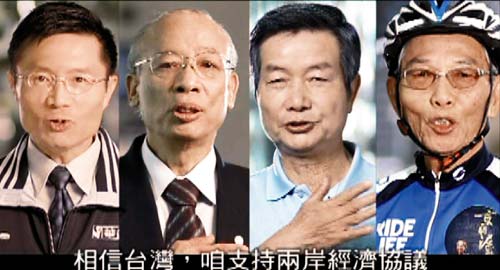 中新網(wǎng)4月14日電 據(jù)臺灣《聯(lián)合報》報道,為了宣傳兩岸經(jīng)濟(jì)合作架構(gòu)協(xié)議(ECFA),臺“經(jīng)濟(jì)部”請出捷安特自行車創(chuàng)辦人劉金標(biāo)、和友紡織董事長卓欽銘、慶鴻機(jī)電董事長王武雄、福助針織公司(華貴牌絲襪)總經(jīng)理魏平祺等人拍廣告,以“傳產(chǎn)F4”身分擔(dān)任代言人。