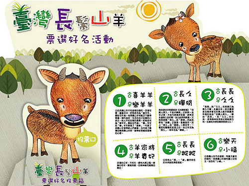 據(jù)介紹,臺北市立動物園會從6月1日起,在梅花鹿與長鬃山羊展場前,設1個月的“最后命名票選活動”,動物園也為游客準備精美投票折頁,除了投下神圣一票,只要動動手,就可以將折頁上的可愛梅花鹿與長鬃山羊,變成立體卡片帶回家收藏。