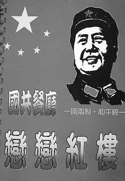 我在金門旅游時,幾位年輕的郵友帶我來到金門老街。這條老街據(jù)說已經(jīng)有幾百年的歷史了,大部分店鋪都保存著原有的風(fēng)貌。這些店鋪主要經(jīng)營當(dāng)?shù)氐耐撂禺a(chǎn),比如金門貢糖、金門高粱酒、金門牛肉干、金門陳皮果,還有金門菜刀等,店鋪也像古代的酒店一樣,旗幡當(dāng)街飄揚(yáng),兩旁一盆盆的鮮花清香四溢,酒香花美,街道中央不時能看到百年的榕樹,盤根錯節(jié)。海風(fēng)陣陣,這真是濤聲依舊,又見千年的滄桑,百年的風(fēng)雨,令人心曠神怡,不知今夕何夕。信步走來,我們想找個地方歇歇腳,喝喝咖啡。抬頭一看,前面“國共餐廳”4個大字極為醒目,紅旗飄揚(yáng),“走進(jìn)新時代”的歌聲清脆悅耳。我想:此時竟在何方,難道我們現(xiàn)在是在大陸嗎?難道國共雙方的代表曾在這里見過面嗎?我們帶著好奇心走進(jìn)了餐廳,美麗的小姐說著流利的普通話,熱情地歡迎我們,請我們?nèi)胱瑸槲覀兤悴,而且馬上遞給我們一個菜譜。這菜譜一看,全是紅色,著軍裝的毛澤東像赫然在目,還有“一國兩制,和平統(tǒng)一”的口號,還印著五星紅旗。打開菜譜一看,有不少大陸的名菜,也有毛澤東喜歡吃的紅燒肉、臭豆腐,真是令人激動!