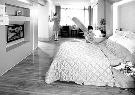 據(jù)悉,這些高檔病房主、客房分離,浴室內(nèi)可以邊看風(fēng)景邊享受蒸汽按摩,回廊上還有自動(dòng)彈奏的電鋼琴、字畫(huà)展覽,病床也換成頂級(jí)彈簧床,木質(zhì)地板營(yíng)造出溫馨氣氛,房?jī)?nèi)還有專屬的個(gè)人管理師。與病房配套的商務(wù)中心可供貴賓休息或開(kāi)會(huì),護(hù)理人員穿著旗袍制服,服務(wù)細(xì)致入微。由此種種營(yíng)造出的“夢(mèng)幻”氛圍,引得偶像劇劇組都來(lái)此取景。(韓朵朵)