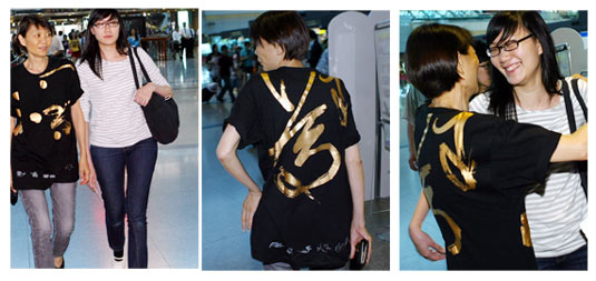 “我昨天才來過,還買兩件!”這位民眾買書法T恤,顯得十分得意,F(xiàn)代美術(shù)館小小的柜臺(tái)詢問度第一名的,就是周美青穿過的“有所不為”T恤,很多人還幫外國(guó)朋友買,結(jié)果第一個(gè)斷貨的就是XLsize。