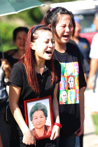 中新網(wǎng)8月15日電 莫拉克臺(tái)風(fēng)帶給臺(tái)灣嚴(yán)重災(zāi)情,高雄縣甲仙鄉(xiāng)小林村大批居民被土石流淹沒(méi)。甲仙鄉(xiāng)公所今天上午請(qǐng)千佛山協(xié)助為小林村9到18鄰遭淹埋的罹難村民,舉辦頭七法會(huì),現(xiàn)場(chǎng)擁進(jìn)千余名家屬,哭聲不斷,場(chǎng)面令人鼻酸。