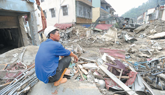 民族村受災(zāi)狀況較嚴(yán)重,村民大都已撤離至山下,民族小學(xué)大門口柱子被土石流沖到200米外的民宅內(nèi),顯示土石流和洪水力道之大,災(zāi)民無奈地說:“災(zāi)后重建路漫漫”。