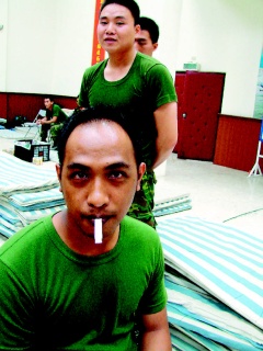 心輔官教導(dǎo)官兵,利用繃緊雙手、擠眉弄眼與用力聳肩等各種不同動作拉緊、放松肌肉,體會肌肉放松時的感覺,進(jìn)而學(xué)會隨時放松自己,以免因太過緊張,造成失眠頭痛等各種不適。