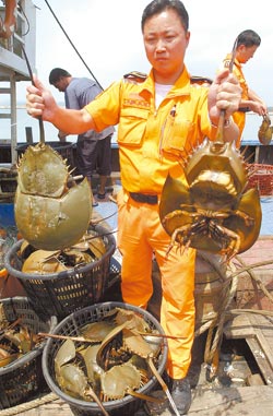 中新網(wǎng)9月18日電 據(jù)臺(tái)灣《中國(guó)時(shí)報(bào)》報(bào)道,來(lái)自福建龍海的“閩龍漁0266號(hào)”漁船昨天越界進(jìn)入金門,濫捕120只已有繁殖能力的成鱟,驚動(dòng)正進(jìn)行人工培育的金門縣水試所,在標(biāo)示紀(jì)錄后全部放流重返大海,11名落網(wǎng)漁民則被移送法辦。