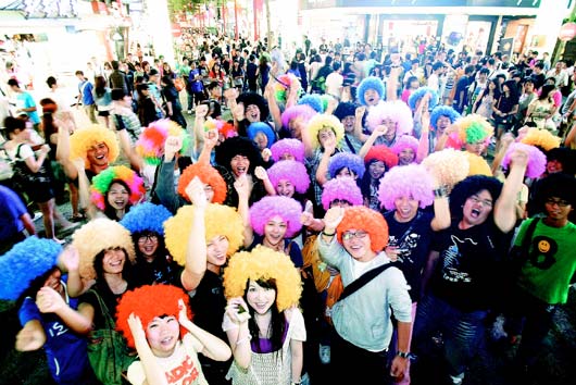 中新網(wǎng)9月27日電 據(jù)臺灣《聯(lián)合報(bào)》報(bào)道,臺灣小學(xué)老師吳睿哲發(fā)起“A-BOW活動”,26日晚號召數(shù)十名網(wǎng)友戴起“爆炸頭”假發(fā)逛臺北西門町,藉以鼓舞、改變自己。