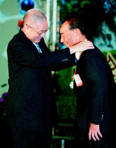 中新網(wǎng)9月29電 據(jù)臺(tái)灣《聯(lián)合報(bào)》報(bào)道,馬英九28日在陽(yáng)明山中山樓表?yè)P(yáng)四十位“教育奉獻(xiàn)獎(jiǎng)”得主,較特殊的是七十八歲的退休校長(zhǎng)陳淵源,他和教師退休的妻子,昨天同時(shí)慶祝五十二周年結(jié)婚紀(jì)念;八十三歲的“林志玲”爺爺,和臺(tái)灣第一名模同名,也很引人注目。