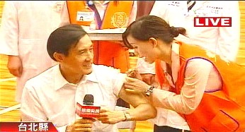 防疫總指揮朱立倫、“衛(wèi)生署長”楊志良上午率先接種疫苗,為國光所產(chǎn)的疫苗背書,今天下午馬英九也卷起袖子來接種,在施打前,縣長周錫瑋還向馬英九保證不會痛,一點感覺都沒有,馬英九則笑說,怎么可能一點感覺都沒有。馬英九用行動表示,呼吁民眾要對自制疫苗有信心。