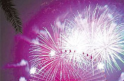 中新網(wǎng)12月29日電 據(jù)臺灣《中國時報》報道,高雄縣感恩祈?缒晖頃,預(yù)計施放三萬發(fā)煙火,全程達八分鐘,不論數(shù)量、時間均創(chuàng)全臺之冠,更有二○一○盞祈福連燈、摩天輪火焰時鐘等特殊煙火,要與民眾共度溫馨難忘的跨年夜。