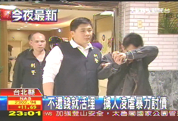 中新網(wǎng)1月22日電 據(jù)臺灣TVBS報道,臺北縣警方破獲一個暴力討債集團,成員都是20多歲的年輕人,但犯罪手段確格外兇狠。面對欠債者,他們聲稱,“不還錢就活埋人”。
