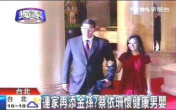 連勝文說(shuō)要調(diào)整重心,只是老大是男生,原本期待第二胎是美麗女娃,現(xiàn)在希望可能落空。嬰兒超音波初步顯示,蔡依珊懷里的寶寶是一名健康的男嬰,也就是說(shuō)連戰(zhàn)很有可能在今年7月就抱到第2個(gè)金孫。
