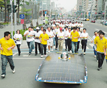 馬拉松賽將于28日上午7時(shí)開(kāi)跑,吸引全球198位選手參賽,總報(bào)名人數(shù)約2萬(wàn)人。造勢(shì)隊(duì)伍昨天從高雄巨蛋戶外廣場(chǎng)跑至捷運(yùn)凹仔底站,小試身手跑了約1.3公里,并請(qǐng)來(lái)高校研發(fā)的太陽(yáng)能車(chē)阿波羅號(hào)擔(dān)任前導(dǎo)車(chē)。