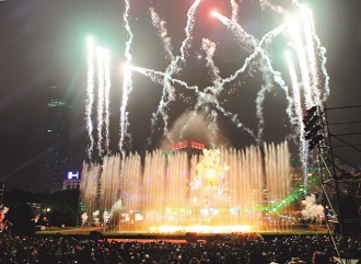 昨晚8點,由福氣虎扮演“福氣大使”,與花博精靈、種子“芽比”,在真人版花仙子的帶領下,從市府前主舞臺漫步到主燈區(qū),F(xiàn)場還發(fā)送熒光棒,象征把百年來最大的福氣光芒散發(fā)給所有民眾。