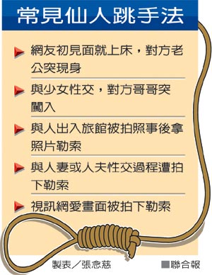 中新網(wǎng)3月17日電 據(jù)臺灣《聯(lián)合報》報道,“要不要一起賺大錢?”16歲的陳姓援交女上網(wǎng)發(fā)現(xiàn),男子徐德欽、謝丁玄征求仙人跳女主角,認為比援交好賺而加入;從去年6月起,這伙人以援交方式設(shè)局仙人跳至少6次,詐財上百萬元(新臺幣,下同)。