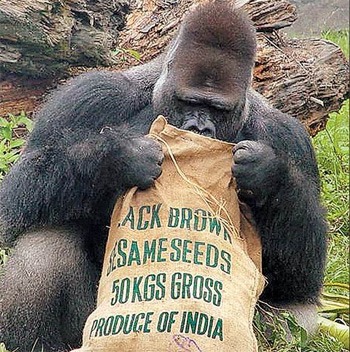 資料顯示,公成年金剛猩猩背上有象征年長的銀白長毛,有人稱之“銀背”。性情溫和、重視家庭,生氣時(shí)會(huì)搥胸吼叫。幼年期的搥胸動(dòng)作多為表達(dá)滿足之意,成年時(shí)的搥胸意義復(fù)雜,有時(shí)用來警告入侵者。