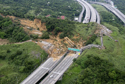據(jù)悉,山崩地點范圍從北二高南下3.1公里至北上2.8公里處,土石覆蓋雙向路面的長度達300米,土石量總重超過20萬噸,南北交通中斷。