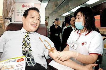 中新網(wǎng)5月6日電 據(jù)臺(tái)灣《中國(guó)時(shí)報(bào)》報(bào)道,臺(tái)灣新竹市長(zhǎng)許明財(cái)于5日出席臺(tái)灣血液基金會(huì)年度績(jī)優(yōu)表?yè)P(yáng)大會(huì)時(shí),第102次的獻(xiàn)血。根據(jù)新竹獻(xiàn)血中心統(tǒng)計(jì),許明財(cái)目前僅次于馬英九的147次,是獻(xiàn)血次數(shù)較多的島內(nèi)官員之一。