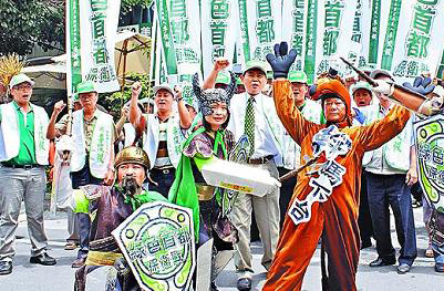 臺南市有300多名臺聯(lián)黨支持者欲北上嗆馬,卻因租不到游覽車,臺聯(lián)市議員參選人丘傭哲竟異想天開,昨與30名支持者分乘4艘舢舨,從曾文溪口闖關(guān)出海,打算循水路往北駛向淡水河。丘傭哲等人登船后,駛離不到100公尺,隨即被海巡人員攔下。(●環(huán)球時(shí)報(bào)報(bào)駐臺北特約記者 蕭師言 ●本報(bào)記者 吳 薇)