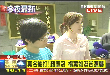報(bào)道稱,一名年約30歲的女子突然拉扯顏圣冠的馬尾,楊蕙如上前制止時(shí),遭到抓傷,2人隨即到仁愛(ài)醫(yī)院驗(yàn)傷,幸好只是輕傷,不過(guò)都受到驚嚇,到警察局制作筆錄。