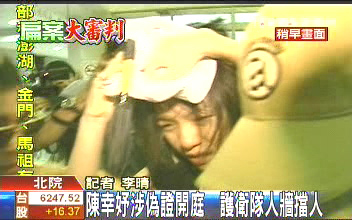 護(hù)衛(wèi)隊(duì)作風(fēng)強(qiáng)悍,組成人墻,用雨傘一路護(hù)著陳幸妤,不讓媒體拍到陳幸妤的表情,躲在雨傘下、戴著漁夫帽的陳幸妤,似乎被雨傘戳到臉,表情不悅,一度不耐、吼叫出聲,而開(kāi)庭結(jié)束離開(kāi)時(shí),又再次爆發(fā)沖突,目前趙建銘正在接受偵訊當(dāng)中。