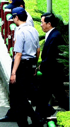 審判長蔡守訓(xùn)上午與扁的唯一交鋒,只在詢問陳水扁對于合議庭決定詰問證人順序有無意見上,扁聞訊態(tài)度堅決不語,即無表情,也不回答,審判長見狀,習(xí)慣的跳過扁,然后問檢、辯和公設(shè)辯護(hù)人的意見。