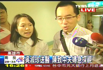而原本在民進(jìn)黨高雄市黨部協(xié)助提供法律咨詢的陳致中,在聽(tīng)聞母親因?yàn)檠獕哼^(guò)低緊急送醫(yī)后,也隨即趕往醫(yī)院探視。