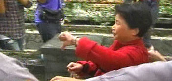 在法警的護送下,陳水扁身著黑西裝,手拿一份牛皮紙袋的資料,從臺北看守所出發(fā)乘警備車前往法院。下午5時40分,車隊抵達(dá)法院,陳水扁臉上帶著一抹淺淺的微笑,未戴手銬。