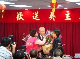 由于吳伯雄即將卸任,因此,吳敦義、“行政院副院長”朱立倫等人今日下午都到國民黨向吳伯雄致意,此外,國民黨還特別在中常會后舉行歡送茶會,并在茶會上贈送吳伯雄名為“海量”的瓷制藝品與法蘭瓷花瓶等紀(jì)念品。