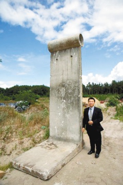 據(jù)“中央社”報(bào)道,今天是柏林圍墻倒塌20周年,德國(guó)歐柏哈佛縣今年4月致贈(zèng)臺(tái)灣一塊柏林圍墻遺跡。王金平9日上午在臺(tái)北出席遺跡揭幕典禮,接受媒體訪問(wèn)時(shí)作出上述表示。