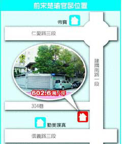 房仲業(yè)者說,這間房地每坪底價(jià)222萬余元,多家業(yè)者都出價(jià)搶標(biāo),最后被邱寶慧以每坪602萬元、總價(jià)7.3億元標(biāo)走,創(chuàng)島內(nèi)住宅區(qū)土地標(biāo)售史上次高紀(jì)錄。