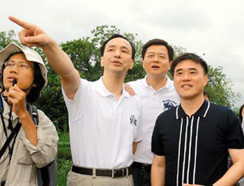 中新網(wǎng)5月31日電 據(jù)臺(tái)灣《聯(lián)合報(bào)》報(bào)道,臺(tái)北縣長(zhǎng)周錫瑋30日邀臺(tái)北市長(zhǎng)郝龍斌、新北市長(zhǎng)參選人朱立倫訪(fǎng)視臺(tái)北縣浮洲濕地,為年底選舉造勢(shì),互勉要把淡水河整治得更干凈。郝龍斌對(duì)三人合作形成“郝錫立(好犀利)”表示,“第一次聽(tīng)到,不錯(cuò)呀!”,周錫瑋不忘補(bǔ)充廣東話(huà)叫“猴塞擂呀!”