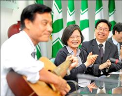 中新網(wǎng)6月3日電 據(jù)臺灣《自由時報》報道,民進黨二日成立“五都”選戰(zhàn)小組,由前秘書長吳乃仁擔任召集人,為年底“五都選舉”擬定策略。黨主席蔡英文在歡送秘書長蘇嘉全參選大臺中市長記者會上,兩人“答嘴鼓”。蘇嘉全還拿著吉他對著蔡英文唱情歌,蔡英文尷尬地笑了出來。